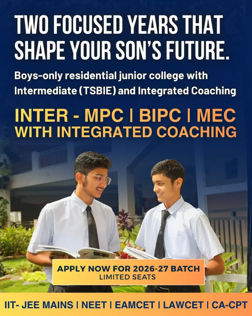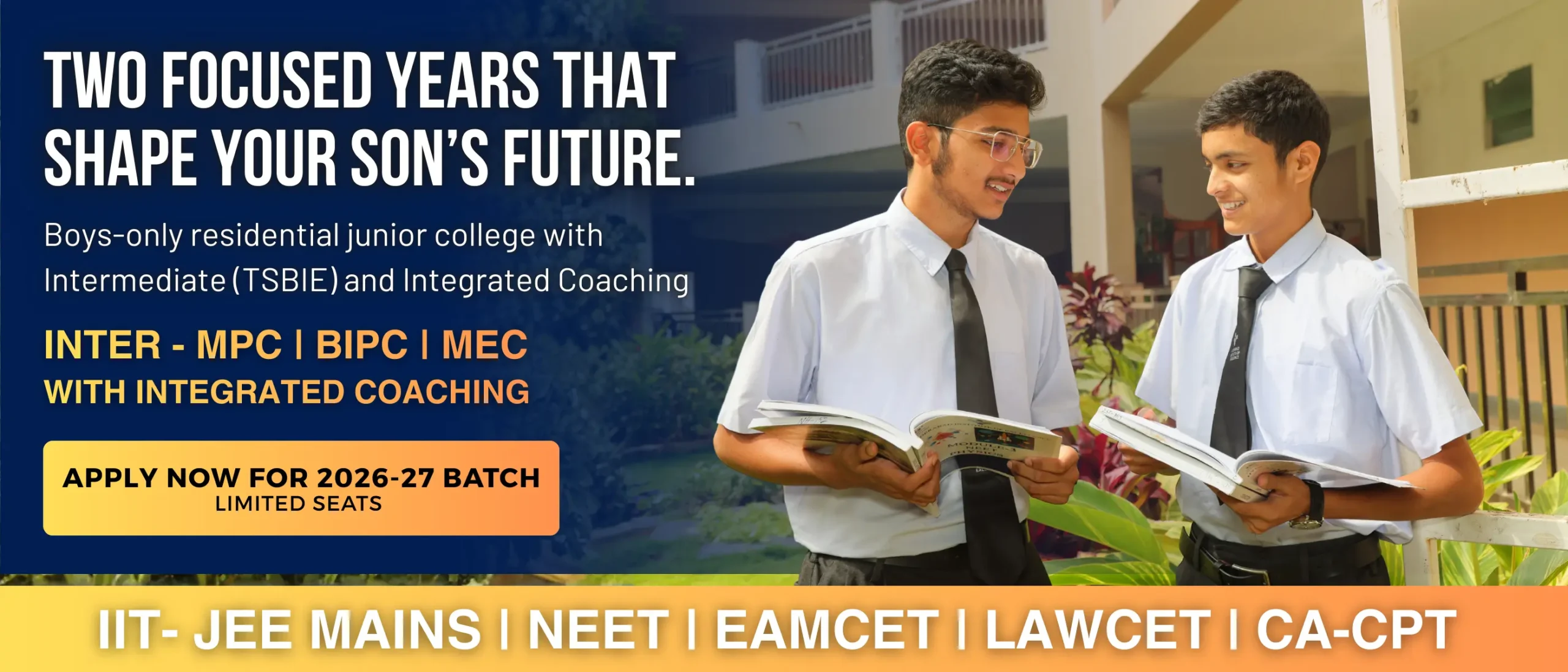 World class residential intermediate college for MPC, BiPC, MEC course. Our courses are integrated with special coaching for National level competitive exams.